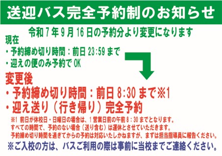 9月16日(火)から送迎バスの運行が、完全予約送迎となります。
